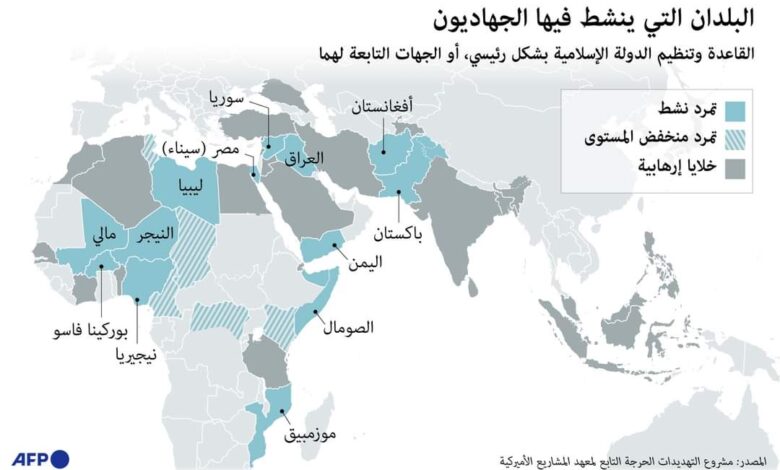 وقد وزرع المشروع نشاط الجهاديين إلى ثلاث تصنيفات؛ في الأول يكون الجهاديون في حالة تمرد نشط، كما هو الحال في كل من مالي والنيجر ونيجيريا وبوركينا فاسو، وليبيا، على سبيل المثال لا الحصر.