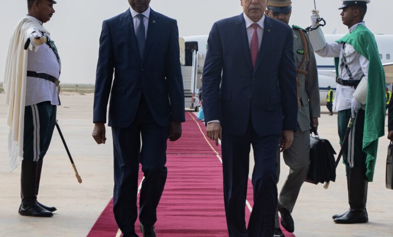 واستقبل صاحب الفخامة بمطار نواكشوط الدولي أم التونسي من طرف معالي الوزير الأول السيد محمد بلال مسعود، والوزير الأمين العام لرئاسة الجمهورية، والوزيرين المستشارين برئاسة الجمهورية، وعدد من أعضاء الحكومة، وقائد الأركان الخاصة لرئيس الجمهورية، والمديرة المساعدة لديوان رئيس الجمهورية، ووالي نواكشوط الغربية، ونائبة رئيسة جهة نواكشوط.