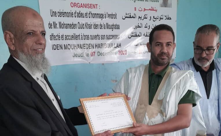 وأضاف ولد ماغه أنهم يودعون مفتشا “مجدا، نصوحا، ويشهد له الجميع بذلك”، مشيرا إلى أنهم في المكتب يرحبون بالمفتش الجديد محمدن ولد حبيب الله.