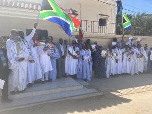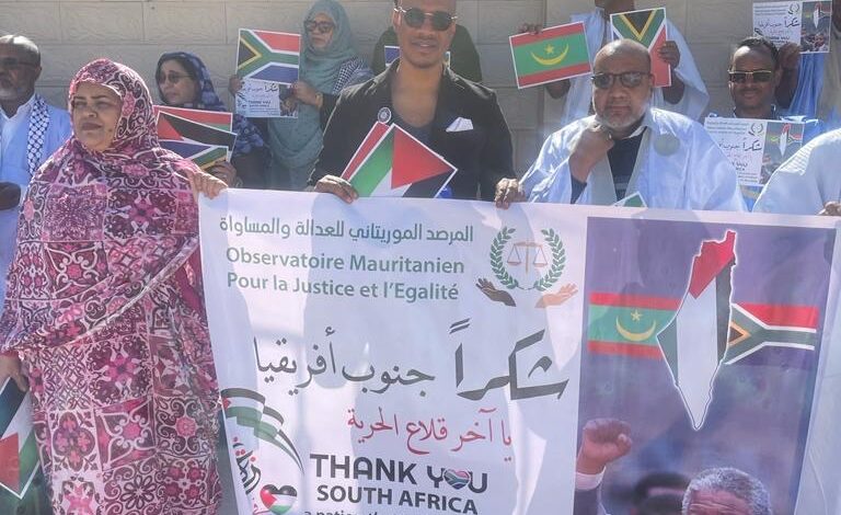 بدعوة من المرصد الموريتاني للعدالة والمساواة، نظمت زوال اليوم أمام سفارة دولة جنوب افريقيا في العاصمة الموريتانية نواكشوط، وقفة شكر وامتنان لمواقف “بريتوريا” من القضية الفلسطينية، ودعمها المطلق لحق الشعب الفلسطيني في تقرير مصيره.