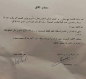 يستأنف الأطباء المقيمون سنتهم الأكاديمية من حيث توققت قبل الاضراب كل حسب مستواه ابتدانا من الإثنين 23 سبتمبر 2024.
