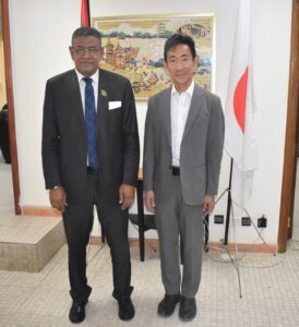 جرى اللقاء بحضور السادة، أعضاءالمكتب التنفيذي: أسند محمد سيد، وماريا لادجي اتراورى والحسن اعمر جوده وإمام الدين أحمدو، إضافة إلى معاوني السفير الياباني.