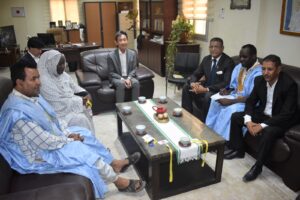 واستقبل الوفد النقابي، لدى وصوله مباني السفارة، من طرف سعادة السيد أوتشيدا تاتسوكوني سفير اليابان لدى الجمهورية الإسلامية الموريتانية.