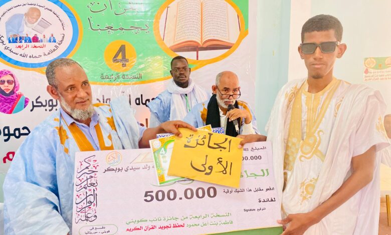 بعد منافسات استهلت فعالياتها مع بداية شهر رمضان المبارك، أعلن في مقاطعة كوبني اليوم عن نتائج مسابقة نائب كوبني فاطمة منت اعل محمود، لحفظ وتجويد القرآن الكريم، في نسختها الرابعة التي أطلق عليها إسم العلامة حماه الله ولد سيدي بوبكر.