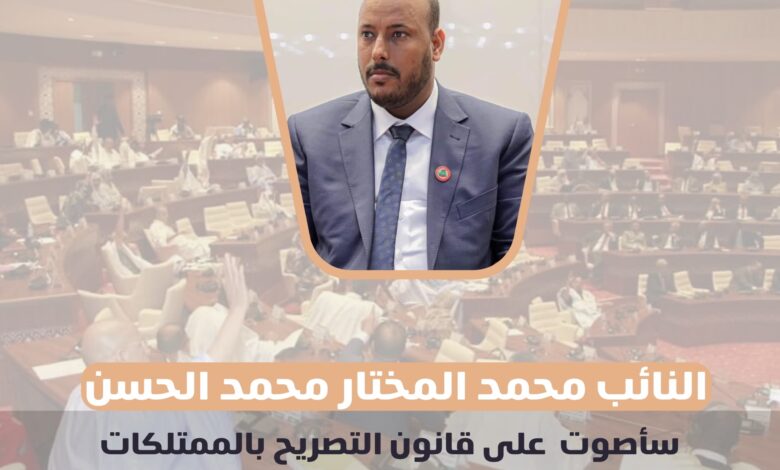 قال النائب محمد المختار محمد الحسن إنه سيصوت لصالح قانون التصريح بالممتلكات وأنه سيكون أول المصرحين لدى الجهة المعنية داعيا زملاءه النواب لدعم هذه الخطوة الهامة، وأضاف في تصريح توصلت به “الحرية نت”: