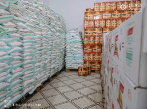 وتتكون السلة الغذائية الموزعة من: السكر، التمر، الحليب المجفف، الزيت والشاي.